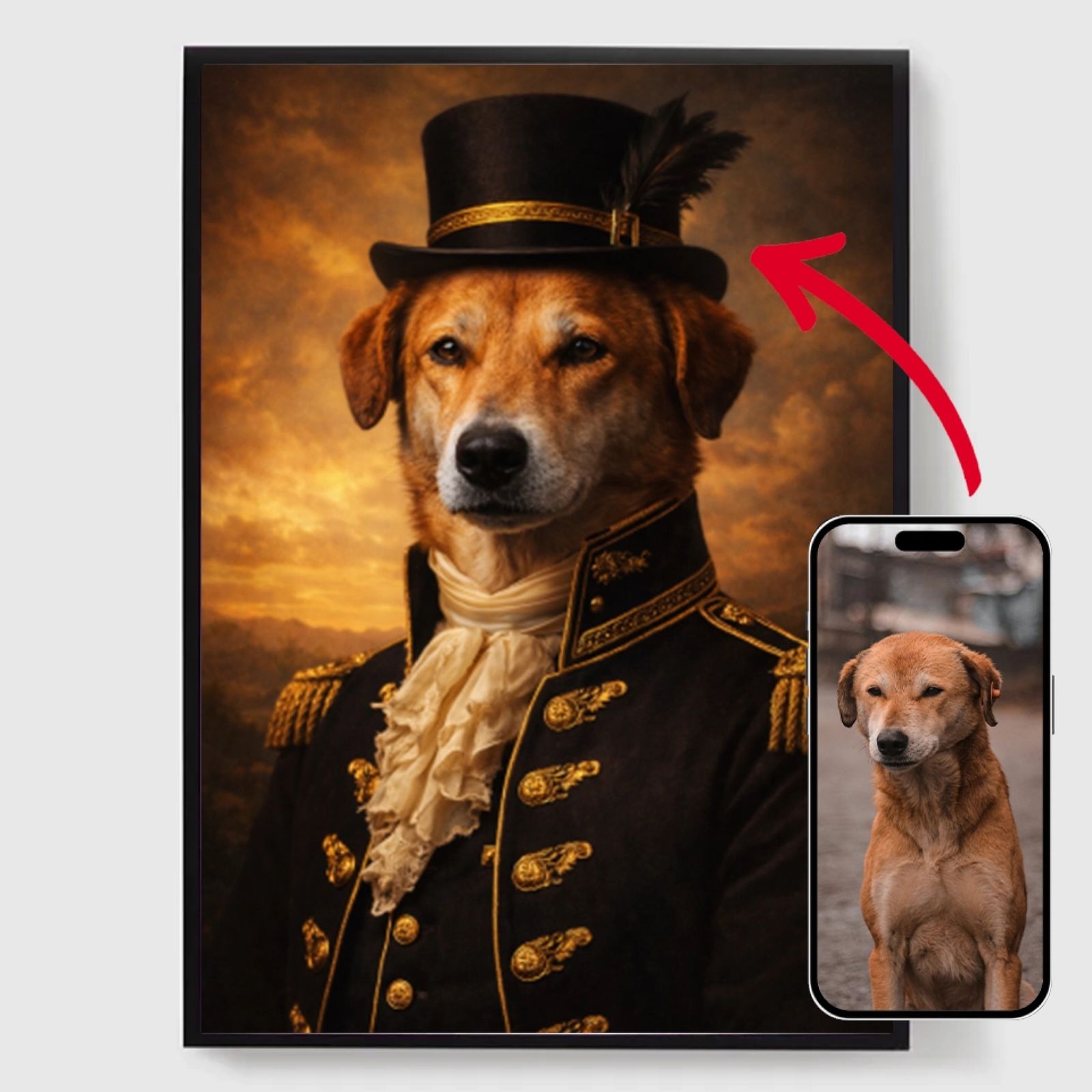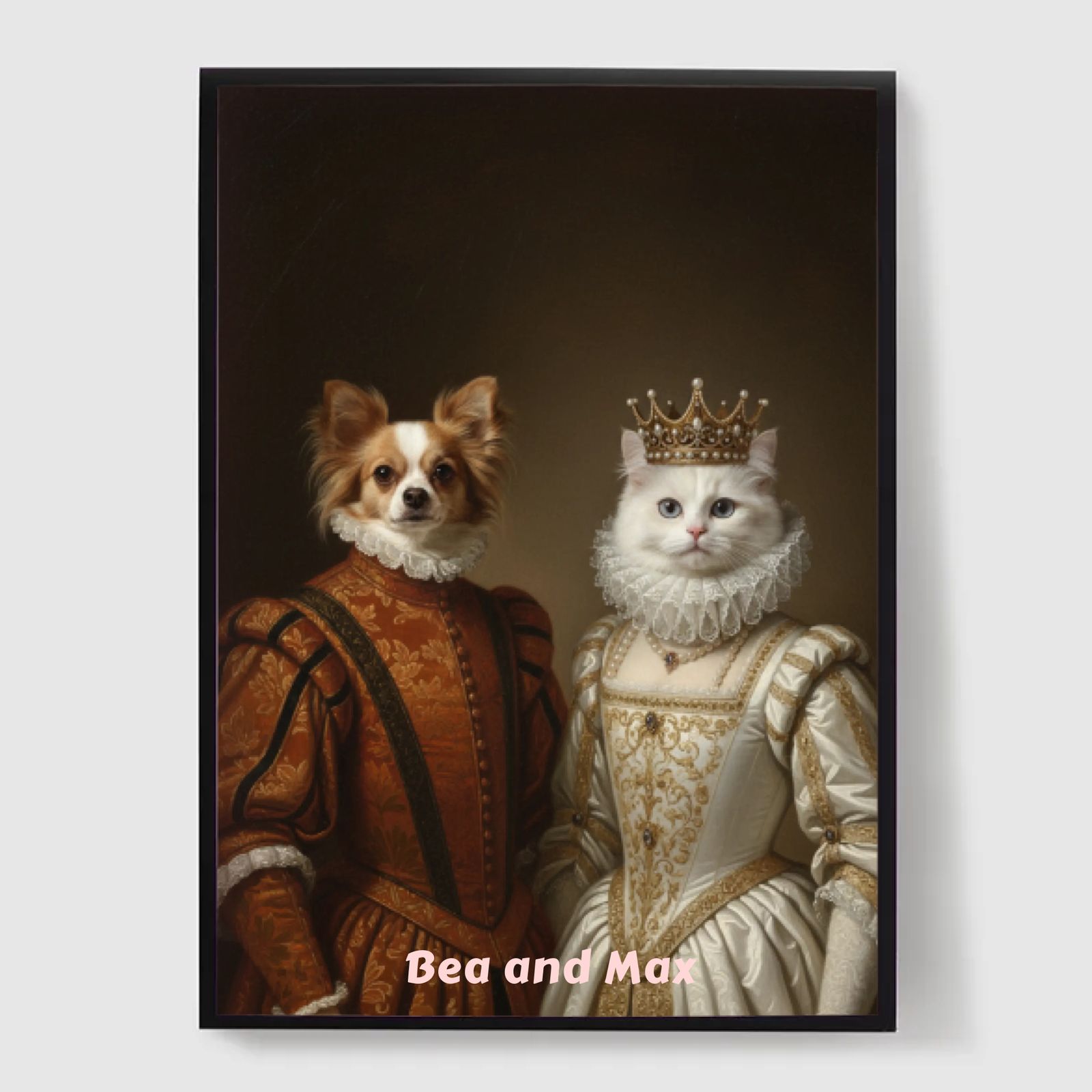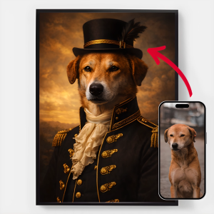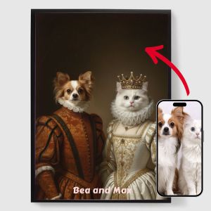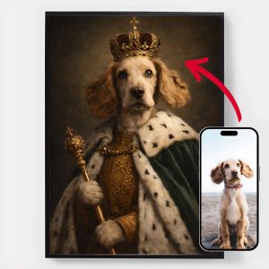 Our personalised royal pet portrait posters are a unique way to showcase your pet's personality. Each piece is custom-made, bringing out a regal side of your pet that you'll love. These posters make perfect gifts for pet lovers or a charming addition to your home decor. With high-quality prints and various sizes available, finding the perfect portrait is easier than ever.