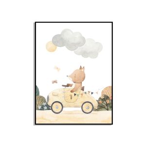 This charming poster features a trio of watercolor vehicle illustrations perfect for adding a whimsical touch to any child's room or play area.