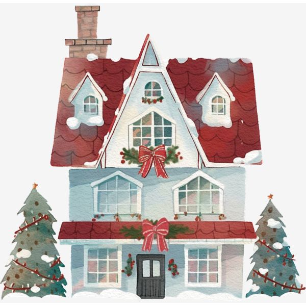 This charming Christmas house sticker is perfect for adding festive cheer to your decor. Featuring a snowy cottage and decorated trees, it brings warmth to any space. Ideal for the holiday season.