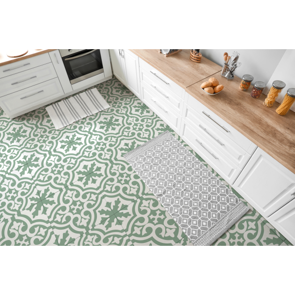 Floor Tiles Sticker -Green / Peel and Stick / 24 pcs