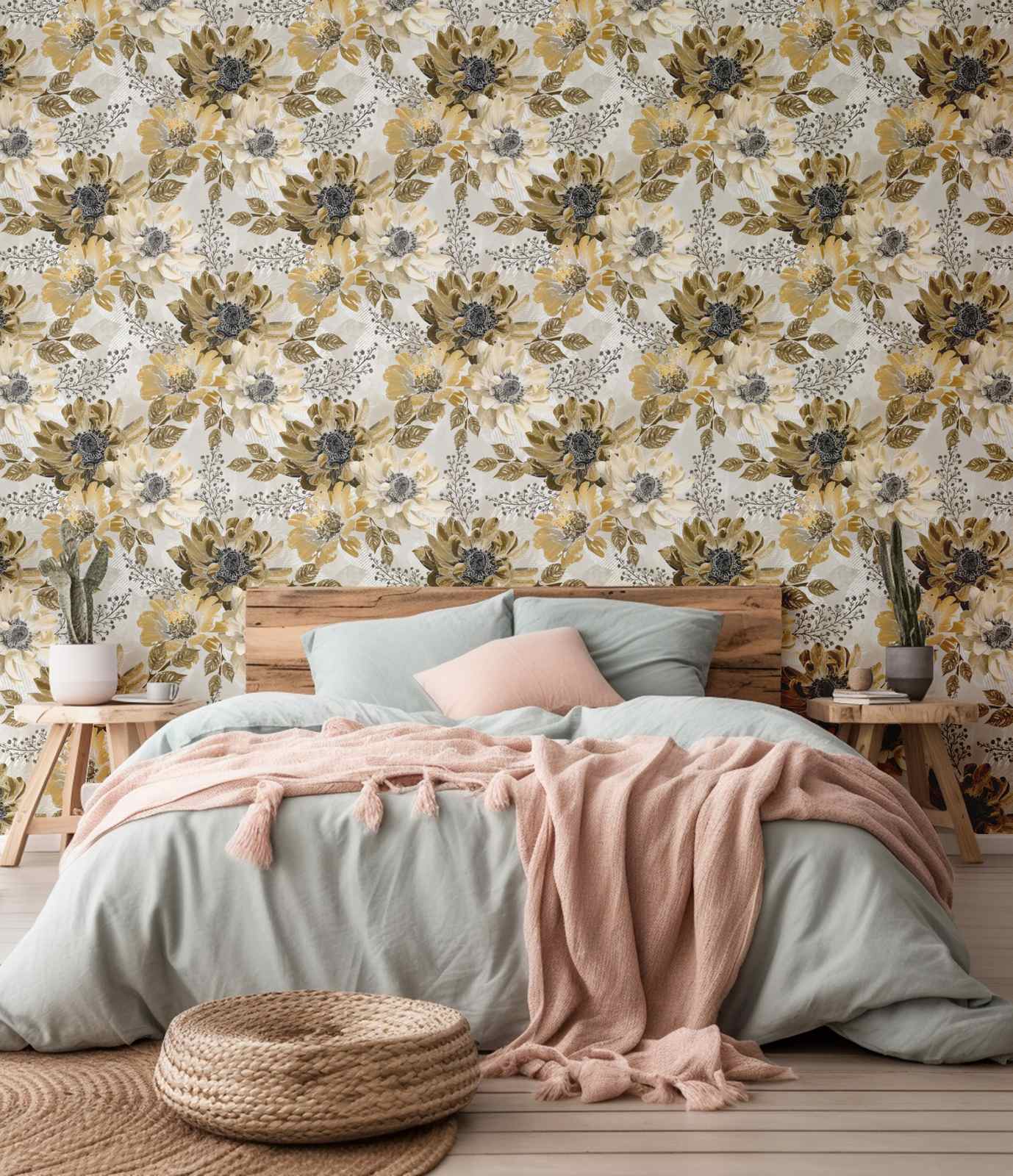 This elegant wall paper showcases a captivating floral pattern, perfect for adding warmth and character to any room. The design features hints of yellow and grey tones, making it versatile for various interior styles. Transform your space with this timeless choice. Product contains a single wall paper only.