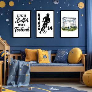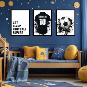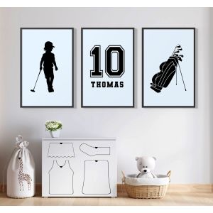 This personalised poster set features a charming equestrian theme, perfect for horse lovers. The set includes images of a saddle, a rider named Emma on a horse, and riding gear. It is customisable to add your own name or phrase, making it a unique addition to any room. Product contains a set of 3 posters only.