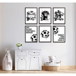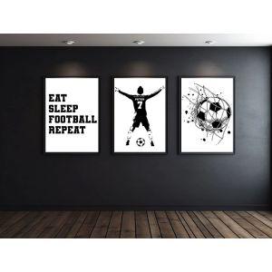 Transform your space with a personalised football-inspired poster set. This set of 3 features a football goal, a customizable jersey named 'EMAN 10', and an action-packed player illustration. Perfect for sports enthusiasts, this customisable product lets you create a unique decor piece. Product contains a set of 3 posters only.