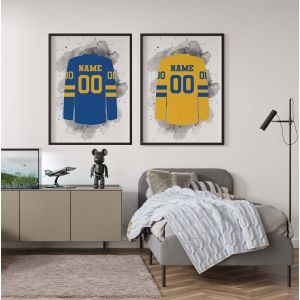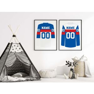 Customise your space with this personalised sports jersey poster set, featuring your name and chosen number. Perfect for any sports enthusiast. Product is customisable. Product contains a set of 2 posters only.