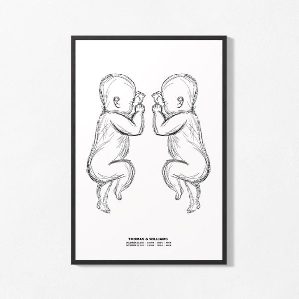 This personalised birth poster captures a beautiful sketch of twins and is the perfect keepsake for families. Cherish the special moments with customisable names and details to make it uniquely yours. Product contains a single poster only.