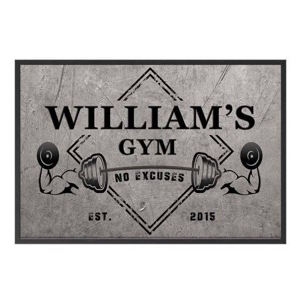 Customise your gym space with this personalised poster featuring the text 'William's Gym - No Excuses - Est. 2015'. Perfect for adding a motivational touch to any workout environment. This product contains a single personalised poster only and is customisable.