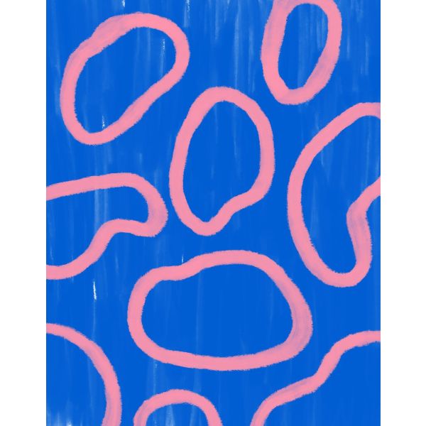 This striking abstract poster features bold pink shapes on a deep blue background. The vivid colors and dynamic design make it a perfect statement piece for any room. Product contains a single poster only.