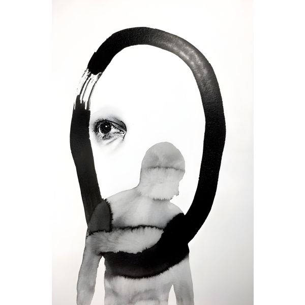 This poster features an abstract design, combining a striking eye and a shadowy figure in monochrome. Its unique artistic style makes it a compelling addition to any modern décor. Perfect for art enthusiasts, this poster highlights the intersection of abstract and figurative art. Product contains a single poster only.