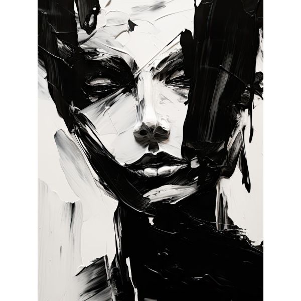 This striking poster features an abstract portrayal of a face in black and white brushstrokes. The monochromatic design adds a bold artistic touch to any space. Product contains a single poster only.