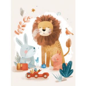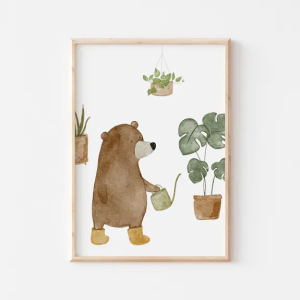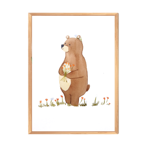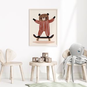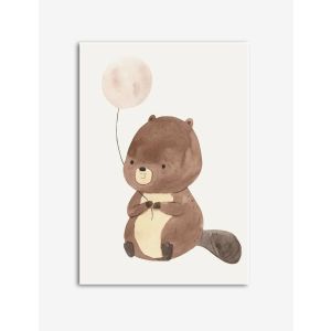 This charming poster features a bear dressed in a striped shirt and beret, greeting you with a friendly "BONJOUR". It adds a whimsical touch to any space. Perfect for children's rooms or nurseries. Product contains a single poster only.