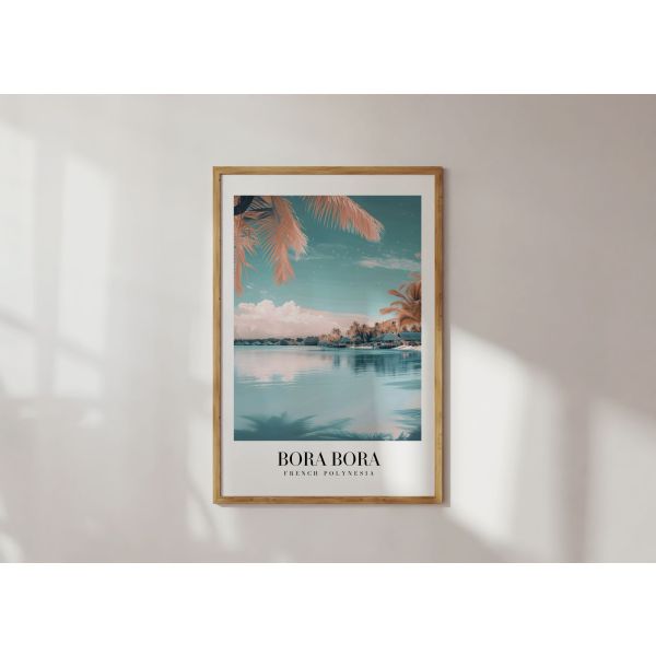 Experience the tranquility of Bora Bora with this stunning wall poster featuring a serene view of the French Polynesian landscape. The soothing colors and peaceful scenery will add a touch of elegance to any space. Prominently displaying 'BORA BORA FRENCH POLYNESIA', this poster captures the essence of this tropical paradise. Product contains a single poster only.