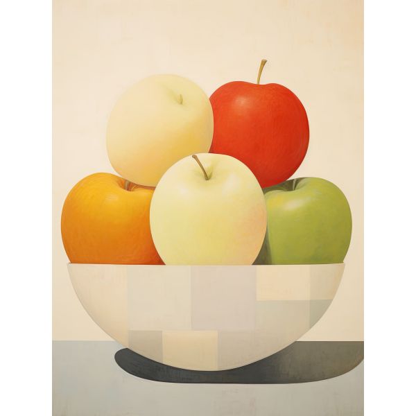 Elevate your living space with this stunning poster featuring a beautifully painted bowl of apples. This artwork captures the vibrant colors and textures of the fruits, adding a touch of elegance to any room. Perfect for kitchens or dining areas. Product contains a single poster only.