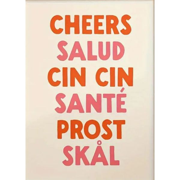 This vibrant poster displays the word for 'cheers' in various languages, including 'CHEERS', 'SALUD', 'CIN CIN', 'SANTÉ', 'PROST', and 'SKÅL'. Perfect for adding a touch of international flair to any room, this poster is both eye-catching and educational. Product contains a single poster only.
