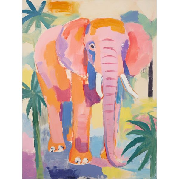 This vibrant poster features a colorful elephant artwork that brings a playful touch to any space. The lively brushstrokes and bold colors make it a standout piece. Product contains a single poster only.