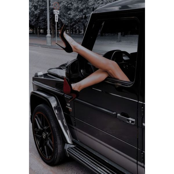 This striking wall poster features an artistic image of a luxury car with a pair of legs elegantly extending from the window. Ideal for adding a touch of sophistication to any space. This product contains a single poster only.