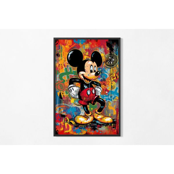 This vibrant poster features the iconic Mickey Mouse amidst a splash of colorful graffiti. A must-have piece for art lovers and Disney fans alike, this poster brings a playful touch to any setting. Perfect as a statement piece in any room. Product contains a single poster only.