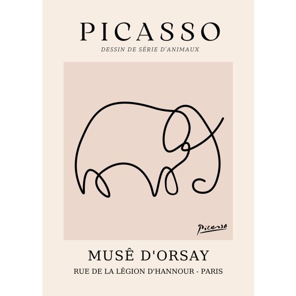 The poster features a minimalistic line drawing by Picasso from the series 'Dessins de Série d'Animaux'. It is from Musê d'Orsay, located at Rue de la Légion d'Hannour, Paris. Ideal for art enthusiasts, this poster adds a touch of sophistication to any room. Product contains a single poster only.