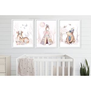 Set of posters with a Boho animal theme. Suitable for the children's room or a nursery.