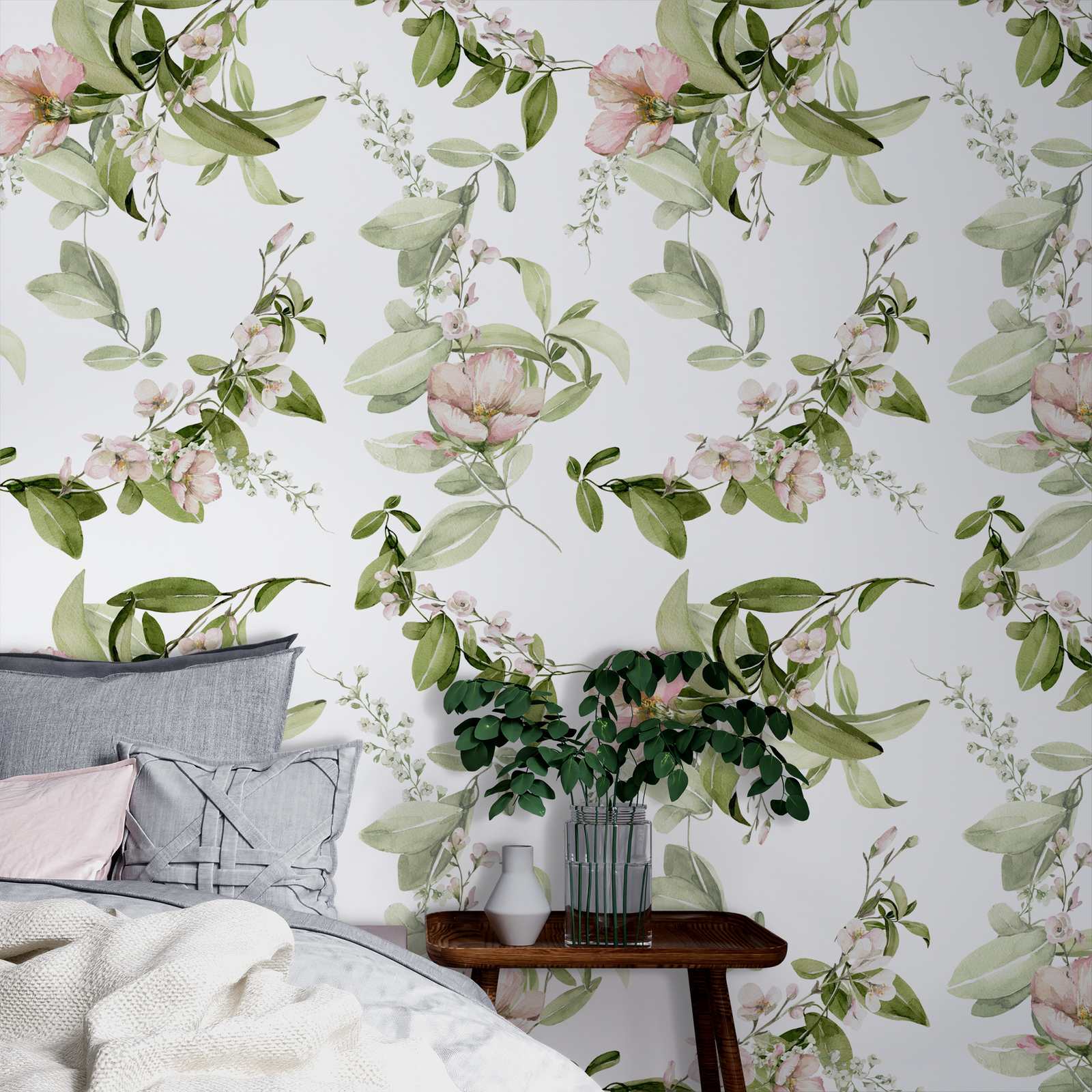 This wall paper features a delicate floral design, bringing a touch of elegance to any room. The soft pastel colors and intricate details make it a perfect fit for a tranquil space. Ideal for creating a calming environment in your home. This product contains a single wallpaper only.