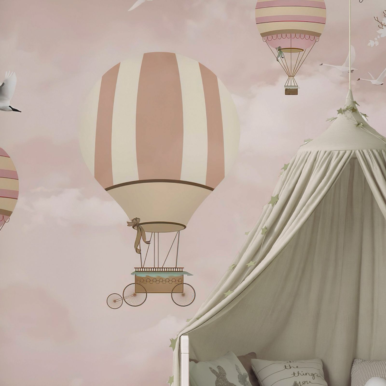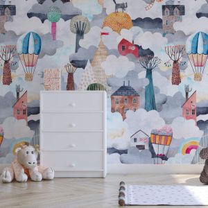 This delightful wall paper featuring whimsical hot air balloons creates a dreamy atmosphere perfect for any room. The pastel colors and serene flying scene add a touch of elegance and peace. Ideal for children's rooms or a unique feature wall.