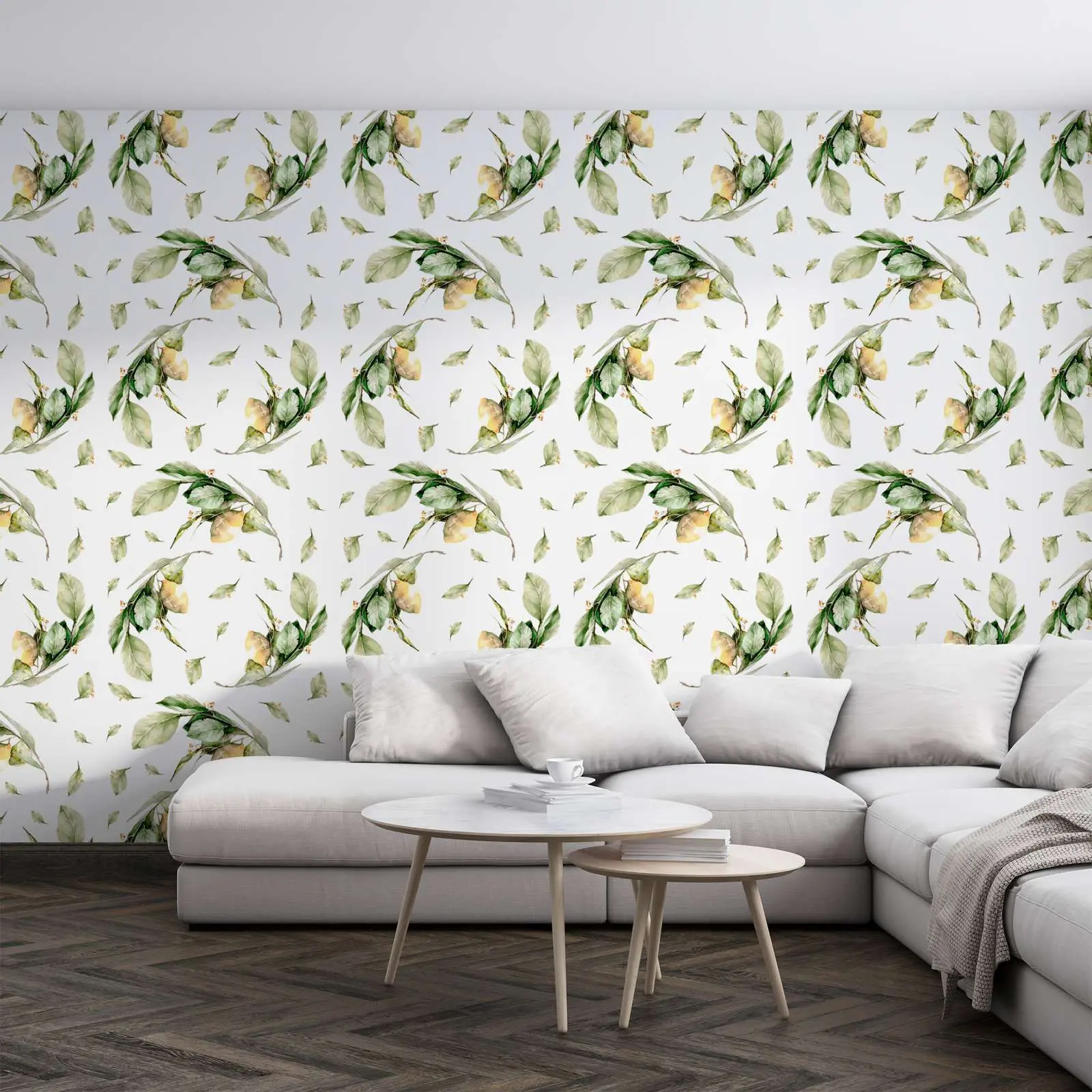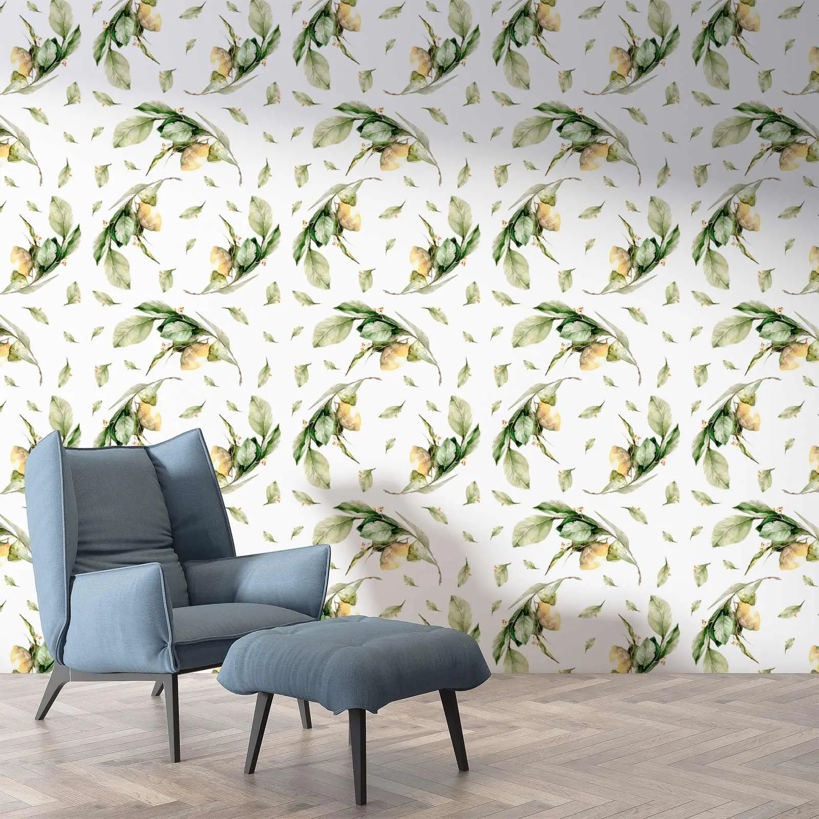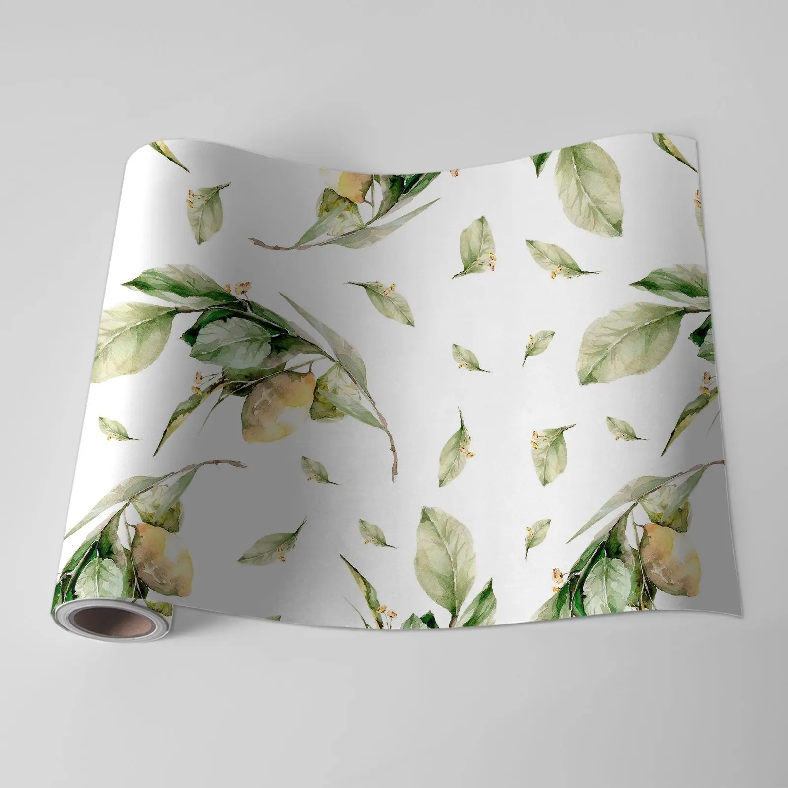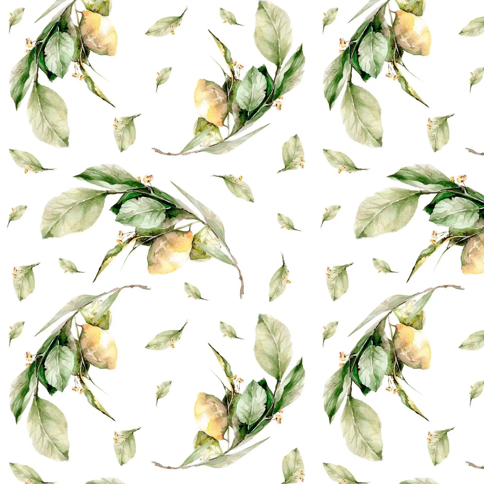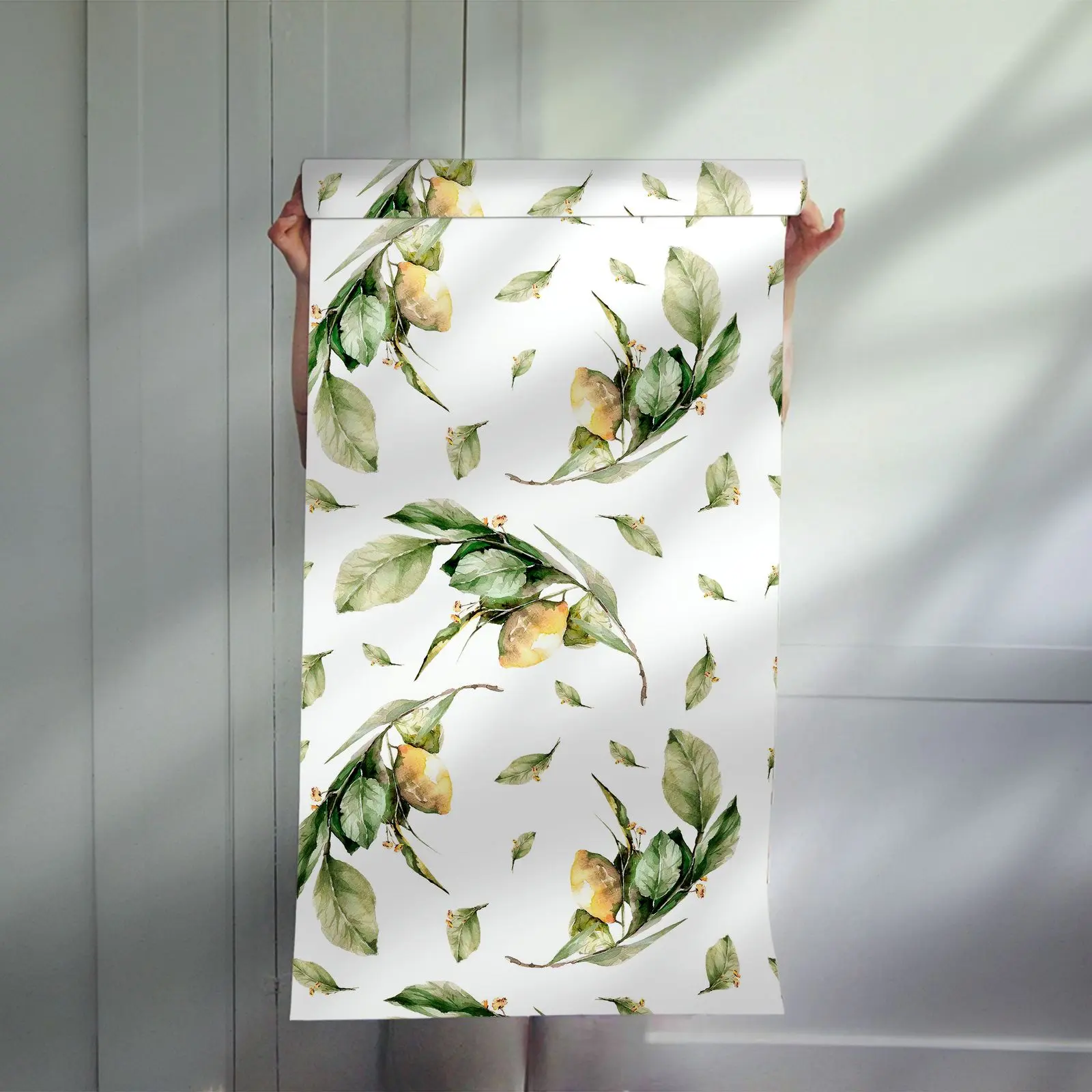 This wall paper features a refreshing lemon leaf pattern, perfect for adding a touch of nature to your home decor. The vibrant green leaves paired with soft yellow lemons create a lively and inviting atmosphere. Ideal for any room in the house, this wall paper seamlessly blends style with subtlety.