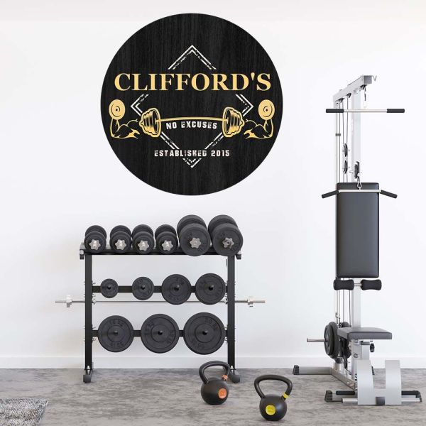 This wall sticker is perfect for creating a motivating gym environment. With designs like 'William's Gym No Excuses' and 'Clifford's No Excuses', it inspires discipline. Add a personal touch to your workout space today!