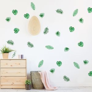 Wallsticker - Tropical Green Leaves and Butterflies